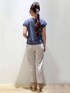 Mim 165cm 【サイズ感】 165cm/骨格ストレート トップスはMサイズ着用で程よいゆとりと落ち感が綺麗でした 【素材感・着心地】 シルケット加工で光沢感と滑らかな生地が楽に綺麗見えを叶えてくれます◎接触冷感機能がこれからの季節に嬉しいです! 【おすすめポイント】 裾の両サイドのボタンがシンプルなコーデも簡単に程よいアクセントを加えてくれます 【スタイリングのポイント】 デーパードパンツと合わせた楽ちん綺麗見えスタイリング