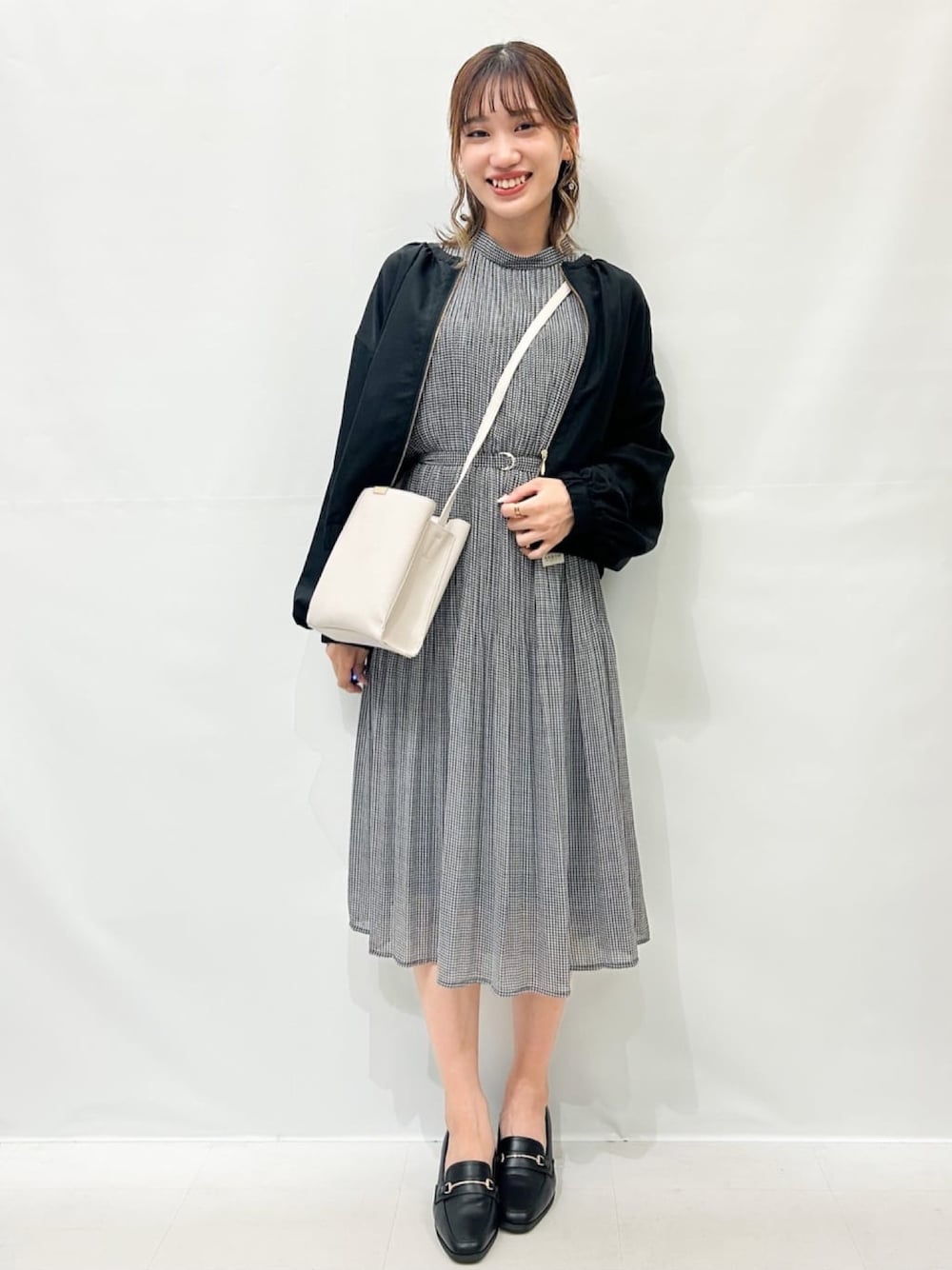 akky 157cm 【サイズ感】 ジャケット...Mサイズ着用. コンパクトなシルエットで袖まわりややゆとりがありました^^ ワンピース...Mサイズ着用. 157cmで膝下の丈の長さでした^^ 【素材感・着心地】 ジャケット...トレンドの程よい透け感があり、サラッと羽織れます! イージーケアでシワにもなりにくいです♩ ワンピース...細かい凸凹感のあるポリエステルジョーゼット素材です^^ 【オススメポイント】 ジャケット...ノーカラーデザインです^^ 丈感コンパクトなのでスタイルアップ効果あり◎ ボトムスも選びません^^ ワンピース...全体的にプリーツが入っており1枚でも華やかに着ていただけます☆ 【スタイリングポイント】 ブラックを主に使いキレイめな印象に♪ ワンピースに柄を加えアクセントに^^