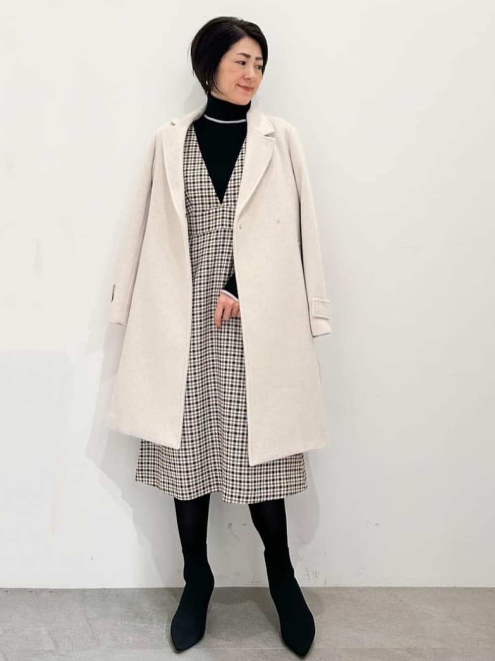 NAKA 161cm チェスターコートのご紹介♪ 《シルエット》 ウエストが高めの位置で絞られており、流行り廃りが無いシンプルなシルエット。 探すとなかなか無い着丈感が◎ 《素材感・着心地》 羊毛とカシミヤ混の高級感がある素材感。 生地につやかんもあるので上品です。 《おすすめポイント》 使いやすいカラーバリエーションが◎ シルエットがシンプルなので飽きがきません。 《スタイリングポイント》 柄のワンピースを合わせて年末年始などのお出かけをイメージしました。