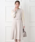 index スタッフ(INDEX)のワンピース「◆≪通勤・セレモニー対応≫ 異素材スリーブフレアワンピース【イージーケア/ストレッチ/洗濯機洗い可】」を使ったコーディネート