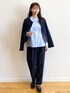 みさか 158cm 【サイズ感】 ・ジャケットはMサイズを肩掛けで着用。腰にかかる着丈です。袖を通しても、肩周りはキツくないです。 ・ブラウスはMサイズ着用。ヒップにややかかる着丈です。袖丈はやや長め。 ・パンツはMサイズ着用。細身体型なのでウエストがやや緩め。同じ細身体型の方はSサイズがおすすめです♪くるぶしにかかります。 【素材感・着心地】 ・ジャケットは程よい厚みのあるツイード素材です。伸縮性はありません。 ・ブラウスは張り感と柔らかさのある素材です♪ ・パンツは上品な落ち感と光沢感があり、高見えします◎身体に張り付きすぎない素材で、着心地も良いです。 【おすすめポイント】 ・ジャケットは通勤からセレモニーシーンでも使えるツイードアイテム◎ ・ブラウスはバンドカラーと、タックデザインでより細身えが叶います。骨格ウェーブの私でも、すっきり着こなすことができました。 ・パンツはシンプルなデザインなので、幅広いシーンで活躍します。カジュアルなシャツやニットと合わせれば普段使いにもなります! 【スタイリングポイント】 ブルーの同系色で揃えた通勤コーディネート♪ジャケットを合わせて、こなれ感をプラス!