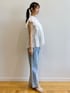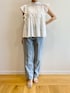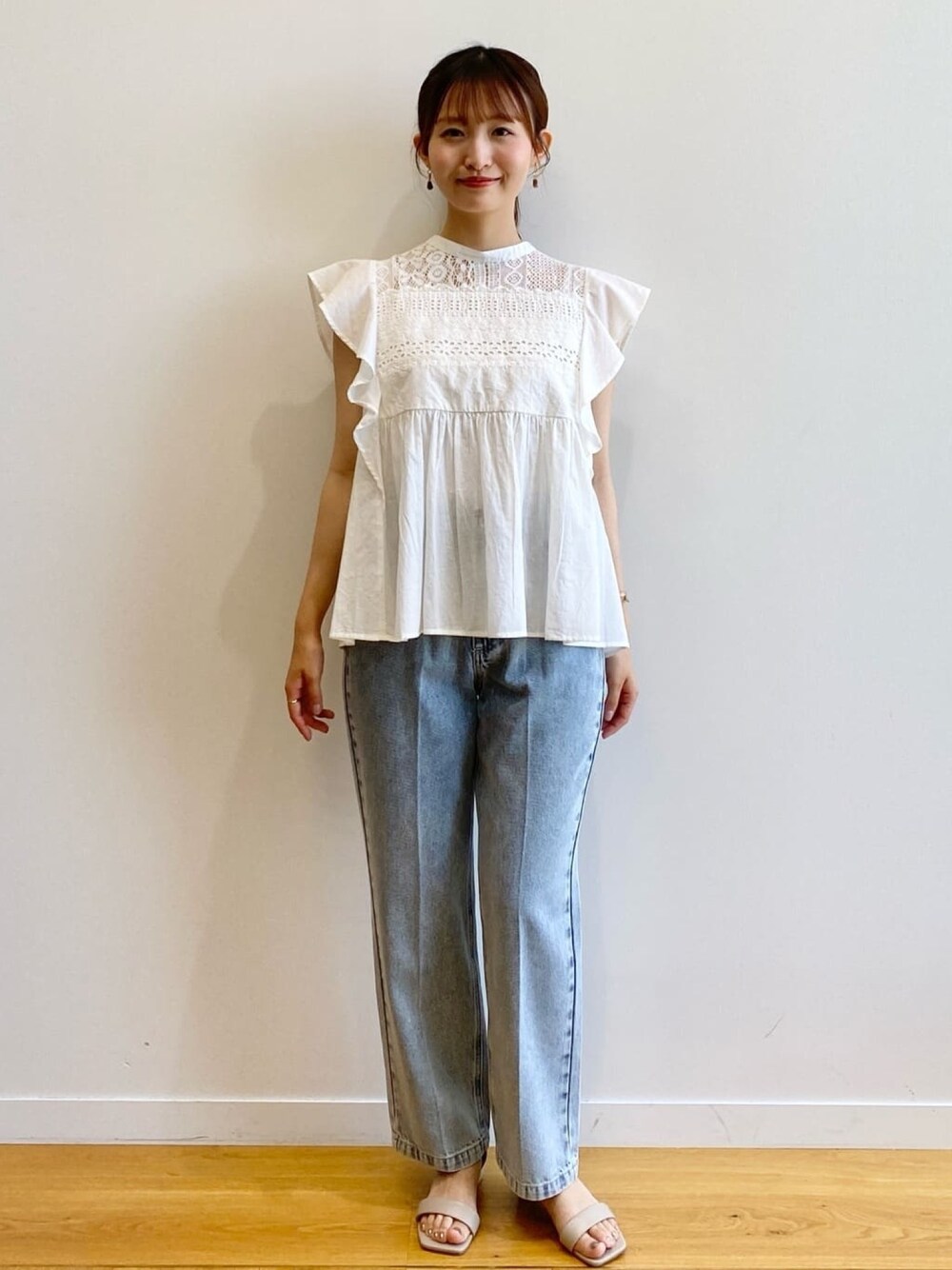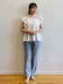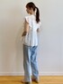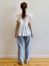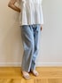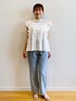 みさか 158cm 【サイズ感】 ・ブラウスはMサイズ着用。着丈はヒップかかる程よい着丈。普段バストラインが窮屈なことが多いですが、このブラウスは胸下あたりからギャザーが入っておりゆとりがあります◎ ・デニムはMサイズ着用。細身体型かつ骨格ウェーブなのでウエストはやや緩めで、ヒップはちょうど良いです。小柄な方はSサイズがおすすめ。着丈はくるぶしにかかります。 【素材感・着心地】 ・ブラウスはコットン100%で軽い着心地です。肌触りも優しい素材感! ・デニムは程よい厚みがで、オールシーズン着用できます◎コットンが入っている素材なので、柔らかさもあります。 【おすすめポイント】 ・ブラウスはレースデザインがポイント。ほどよい肌見せが叶います。二の腕は程よくカバーできます。 ・デニムはシルエットが綺麗です。センタープレスが入っており、すっきり見えが叶います!明るめブルーカラーなので夏らしいです。 【スタイリングポイント】 コットンブラウスが主役のカジュアルコーディネート♪骨格ウェーブですが、ブラウスで程よくヒップが隠れるので、腰回りが気になりませんでした!