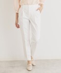 ミー 160cm 【サイズ感】 トップス⚫︎Mサイズ着用。程よいフィット感あります。丈は短めです!ボトム⚫︎Mサイズ着用。身長160cmでくるぶしが隠れる長さでした^^ 【素材感・着心地】 トップス⚫︎ドライタッチな肌触りで、袖の透け感がとてもかわいいです♡ ボトム⚫︎びっくりするほどストレッチ効いてます!!白(002)はやや透け感があるため、ペチコートやベージュのインナーを着用していただくと安心です♪ 【オススメポイント】 トップスのチュールデザインがとても華やかで、一枚で着映えします♡ 【スタイリングポイント】 大人休日コーデです♪持ち手フリルが可愛い夏材バッグを合わせカジュアルダウン。足元は上品なゴールドを合わせました!