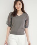 index スタッフ(INDEX)のニット/セーター「◆《5color》レーススリーブVネックニット【洗濯機洗い可】」を使ったコーディネート