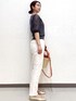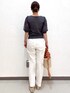ミー 160cm 【サイズ感】 トップス⚫︎Mサイズ着用。程よいフィット感あります。丈は短めです!ボトム⚫︎Mサイズ着用。身長160cmでくるぶしが隠れる長さでした^^ 【素材感・着心地】 トップス⚫︎ドライタッチな肌触りで、袖の透け感がとてもかわいいです♡ ボトム⚫︎びっくりするほどストレッチ効いてます!!白(002)はやや透け感があるため、ペチコートやベージュのインナーを着用していただくと安心です♪ 【オススメポイント】 トップスのチュールデザインがとても華やかで、一枚で着映えします♡ 【スタイリングポイント】 大人休日コーデです♪持ち手フリルが可愛い夏材バッグを合わせカジュアルダウン。足元は上品なゴールドを合わせました!