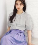 index スタッフ(INDEX)のシャツ/ブラウス「◆UV カラーストライプバンドカラーブラウス【防シワ/イージーアイロン/洗濯機洗い可】」を使ったコーディネート