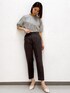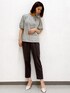 yurina 167cm 【サイズ感】 ブラウス:Mサイズ着用 ほどよいゆとりがあります。 パンツ:Mサイズ着用 ウエストはジャスト。丈はスッキリ履けます。 【素材感・着心地】 ブラウス:ややハリのあるお素材。サラッとしており着心地抜群です。 パンツ:裏地なしで、夏でも快適に過ごせる通気性の良いお素材です。 【オススメポイント】 どちらもシワになりにくいお素材でお手入れ簡単! 【スタイリングポイント】 ブラウスとキレイめパンツで、お仕事シーンにもおすすめのスタイリングです。