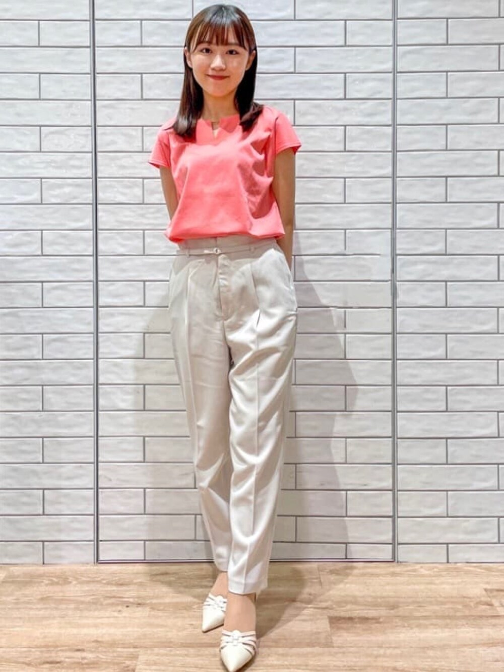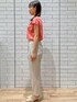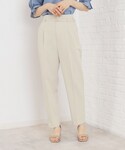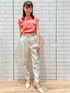 Hii 154cm 【サイズ感】 ・トップス→ジャストサイズですが、窮屈な感じはありません。 ・パンツ→こちらもジャストサイズで、丈は154cmの私が履いて足首ピッタリです。 【着心地】 ・トップス→サラサラしていて涼しいです! ・パンツ→生地が柔らかく、動きやすいです。 【スタイリングポイント】 夏らしく、明るいカラーのトップスにライトベージュのパンツを合わせることで、全体的に軽めの印象にまとめました。 【おすすめポイント】 パンツがウエストで細かく調整できるため、好みのサイズ感で着用できます。低身長さんやスリム型の方にもオススメです!