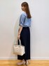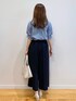 みさか 158cm 【サイズ感】 ・ブラウスはMサイズ着用。腰にかかる程よい着丈で、ボトムにインがしやすいです。身幅はややゆとりがあります。 ・パンツはMサイズ着用。細身体型なのでウエストはやや緩めですが、ウエストサイドからゴム仕様になっているので、フィット感があります! 【素材感・着心地】 ・ブラウスは名品ブラウスシリーズ。軽い素材で楽な着心地。身体のラインも拾いすぎません!サラッとしています。 ・パンツはサラッとして肌離れが良い、リネン見えする素材感。夏に嬉しい吸水速乾の機能がついています♪ 【おすすめポイント】 ・ブラウスは新色カラーを着用しています。二の腕カバーができるタックデザインが魅力!ボトムにインをしなくてもバランスが良く着こなせます♪ ・パンツはセンタープレスで、すっきり見えします!脚のラインも拾わないです。 【スタイリングポイント】 清涼感のある夏のオフィスコーディネート。ブルーの同系色で揃えました。重くなりすぎないようにバッグとサンダルは明るいカラーをチョイス♪
