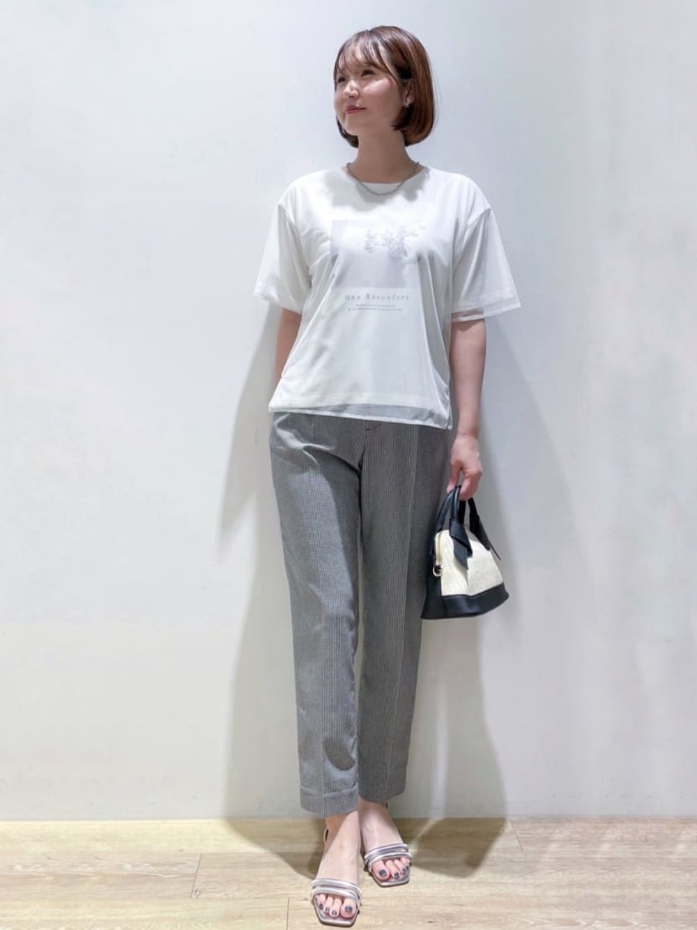 mizuki 160cm 【サイズ感】 160cm/骨格ナチュラル トップスはfreeサイズで 程よくゆとりがあります。 パンツはMサイズ着用で 程よくゆとりがあります。 【素材感・着心地】 トップスはコットン・ポリエステルの ジャージ素材で、 表面に柔らかいチュールが重なっています! 【おすすめポイント】 Tシャツの上からチュールが重なり、 シアー感が今っぽいです! 【スタイリングのポイント】 プリント入りのTシャツにチェック柄パンツで カジュアルなお出かけスタイルに!