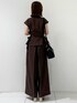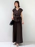 kozu 148cm 【サイズ感】 ・パンツ Mでお直し要らずの丈感です◎ 腰の位置で止まるサイズ感で 大き過ぎずに穿けました(^^) 【素材感】 リネンタッチでサラッとした表面が 肌離れも良く涼しく着て頂けます◎ 【おすすめポイント】 洗濯機で洗えてお手入れも簡単◎ イージーアイロン、防シワ付きで 普段使いしやすいですよ(^^) 【スタイリングポイント】 セットアップでおしゃれに決めてみました(^^) 秋のイメージのブラウンコーデは サンダルで夏らしさを演出するのがおすすめです!