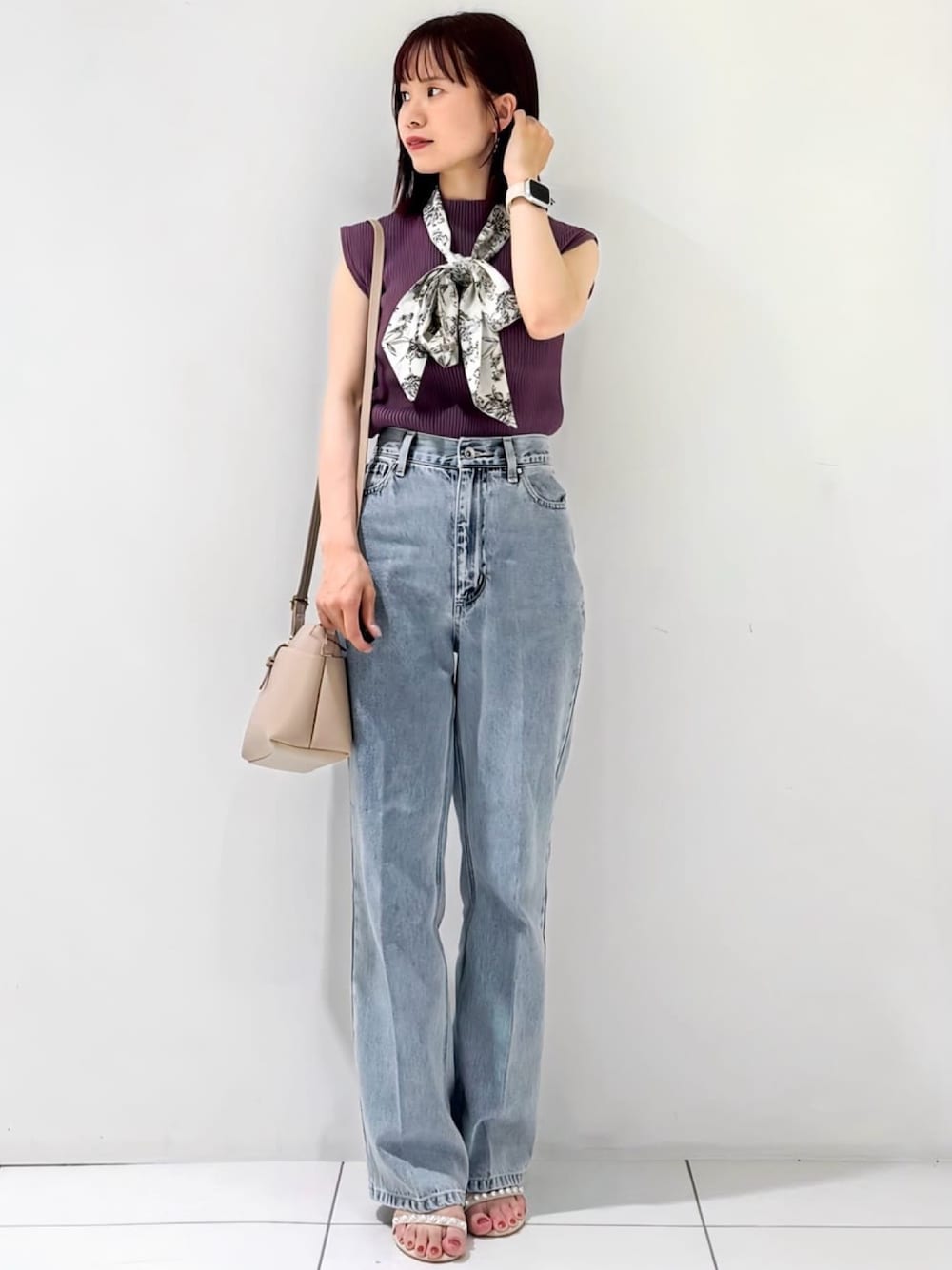 kozu 148cm 【サイズ感】 ・トップス コンパクトめなサイズ感なので Mでサイズ感大丈夫でした(^^) 【素材感・着心地】 ・トップス チクチク感なくもちっとした生地感で 滑らかな肌触りが着心地抜群◎ 伸縮性のあるリブ素材が着脱しやすいです! 【おすすめポイント】 インナー使いもしやすく キレイめなオフィススタイルや カジュアルなデニム合わせなど ボトムを選ばないデザインです(^^) 【スタイリングポイント】 リブニット×デニムパンツで 女性らしさも兼ね備えた大人かっこいい スタイリングに仕上げてみました! 明るめなデニムは一着持っておくと 夏コーデに大活躍しますよ(^^)