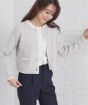 index スタッフ(INDEX)のカーディガン/ボレロ「◆パール調ツイードライクノーカラーカーディガン/セットアップ対応【洗濯機洗い可】」を使ったコーディネート