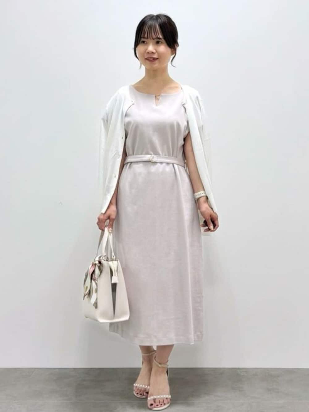 kozu 148cm 【サイズ感】 ・カーディガン 肩まわりに程よくゆとりがあり、 コンパクトな丈感でバランス 良く羽織れるサイズ感です。 ・ワンピース 身体のラインを拾いすぎない ゆるやかなシルエット。 付属ベルトでウエストマークすると メリハリが出て、スタイルアップ効果も◎ 【素材感・着心地】 ・カーディガン 柔らかく、薄手でさらっとした素材感。 羽織りやすく、冷房、日除け対策や 季節の変わり目にも活躍します。 ・ワンピース なめらかな肌ざわりで、軽やかな着心地。 光沢感のある生地が上品な印象を与えてくれます。 【おすすめポイント】 ワンピースのシンプルなデザインに、 カーディガンをプラスすることで、 きちんと感と抜け感を両立できるスタイリング。 ベルト付きなので、気分に合わせてシルエット調整も可能です。 【スタイリングポイント】 カーディガンは肩掛けで抜け感を演出。 バッグやサンダルを白系でまとめることで、 春夏らしい爽やかさと 上品さを引き立てたコーディネートに仕上がります。