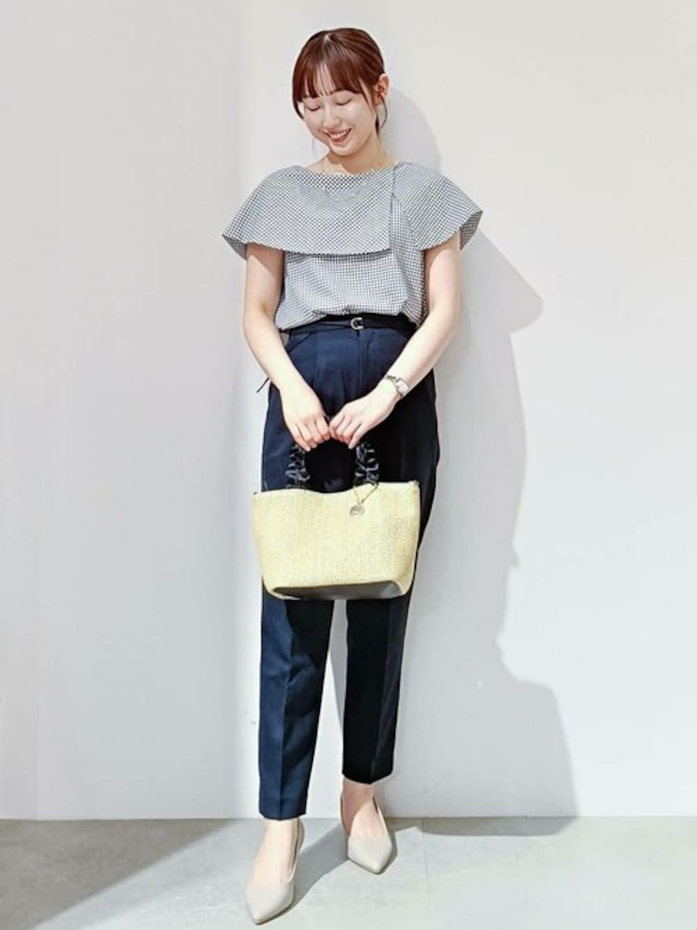 のん 157cm ☆サイズ感 トップスMサイズ、パンツSサイズ着用でピッタリでした。 ☆素材感 トップス→滑らかな肌触りで通気性も良いです! パンツ→サラッとした穿き心地で、梅雨の時期でも快適に着用できます! ☆おすすめポイント トップス→ビックカラーデザインでスタイリングが華やぎます。 パンツ→脚のラインを拾わないテーパードシルエットがとてもキレイです! ☆スタイリングポイント テーパードパンツと合わせたお出かけコーデ☺︎