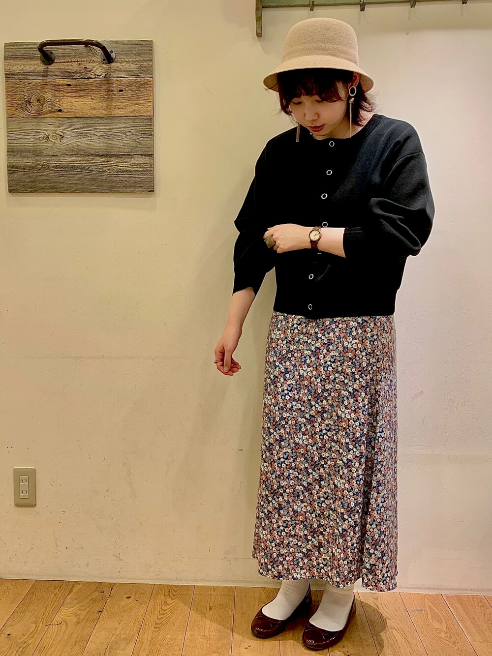 ご覧頂き、ありがとうございます。 SM2 olohuone エスパル福島店 柳沼です🐐 『昭和レトロ雑貨を集めては アンティーク棚に並べるのが趣味。 十八番は並木路子のリンゴの唄。』 がテーマ🕰🍎 レトロな花柄が映える黒のカーデは 着心地が柔らかくて着やすいんです バケハひとつでコーデが決まるので 春夏はぜひ取り入れたいアイテムですね!