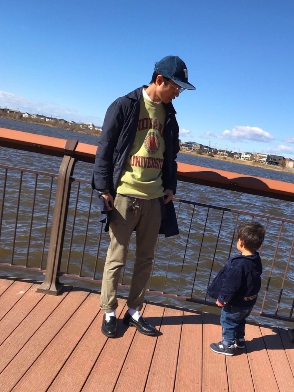 カレッジプリントのスウェットにボタンダウン、コットンパンツにローファーで鉄板プレッピーに。 @LOOOOL.vintage https://looool.base.ec