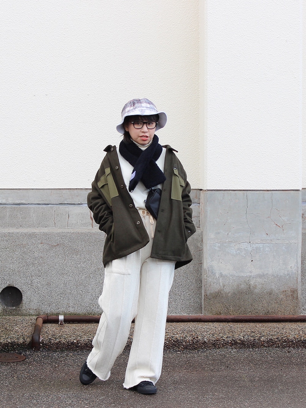 立山をはじめ各地の山が白くなってきましたね。 今シーズンは雪が降るような予報ですね♪ ウィンタースポーツ好きにはたまらない季節が到来ですね! さて、今年最後のスタイリングは 去年から人気のCPOジャケットをメーンに 冬のコーディネートしました。 カーキのCPOシャツが映えるように インナーやパンツ、ハットなどをホワイトにし、 小物は締めカラーのブラックで!! ストールなどの冬小物は外せない季節になりましたね あったかいアイテムで冬を乗り切りましょう♪
