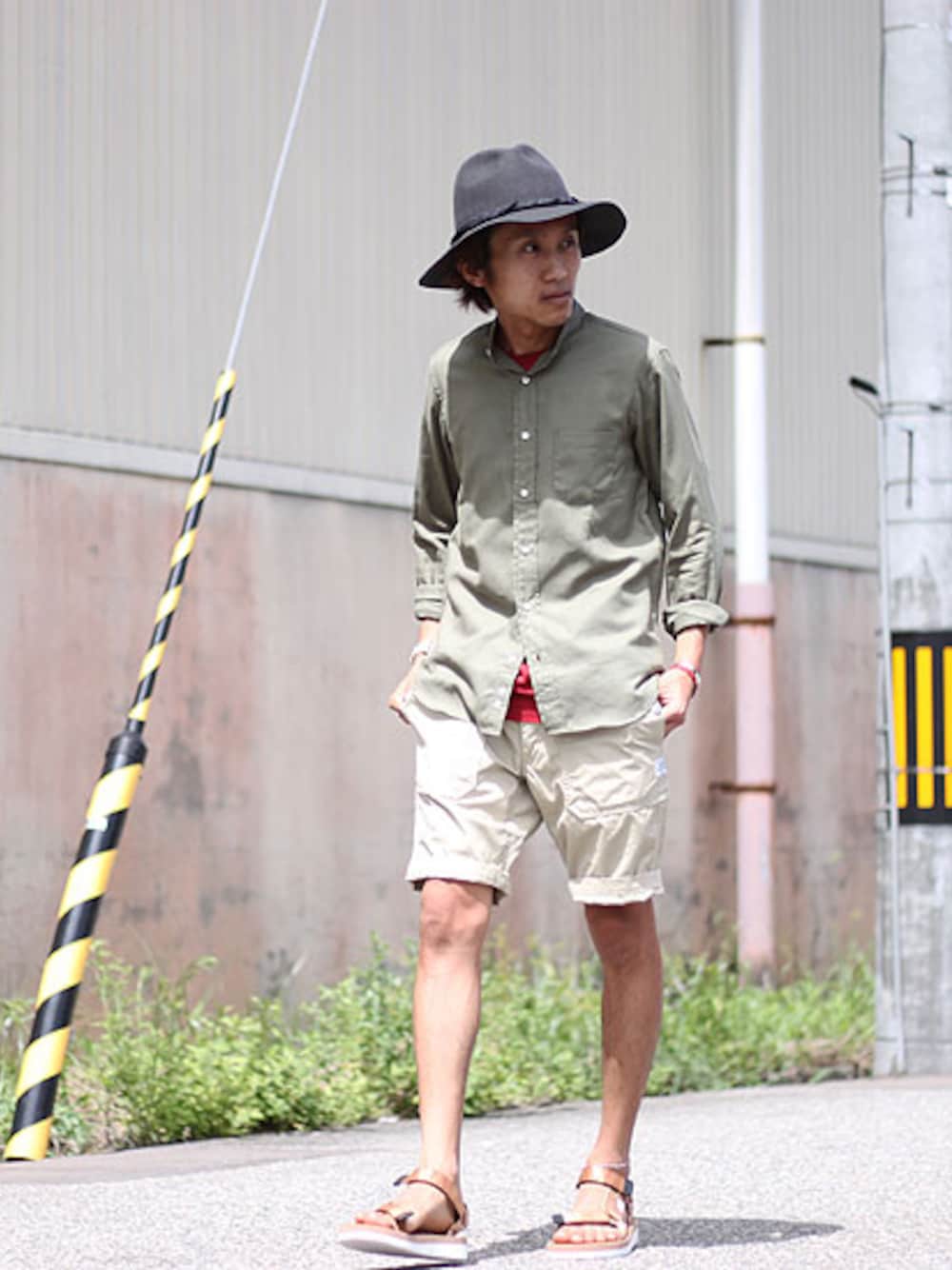 8月最終日、短い夏も少しづつ終わりが近づき、涼しい日もあったりと 個人的には少し寂しい感じがしてきます。。。 夏から秋へと季節の変わり目ですが、まだまだ暑い日も続きますね。 今回は秋らしい落ち着いたカーキを取り入れつつ、夏っぽさも残した 「END OF THE SUMMER STYLE 」 ヘリンボーン素材、バンドカラーのシャツはちょっとした高級感もありながら カジュアルなショーツ、サンダルスタイルとも相性◎ カーキ×ベージュの秋カラーにレッドの夏カラーがベストマッチ!! 夏の終わりの今の時期にぜひ^^