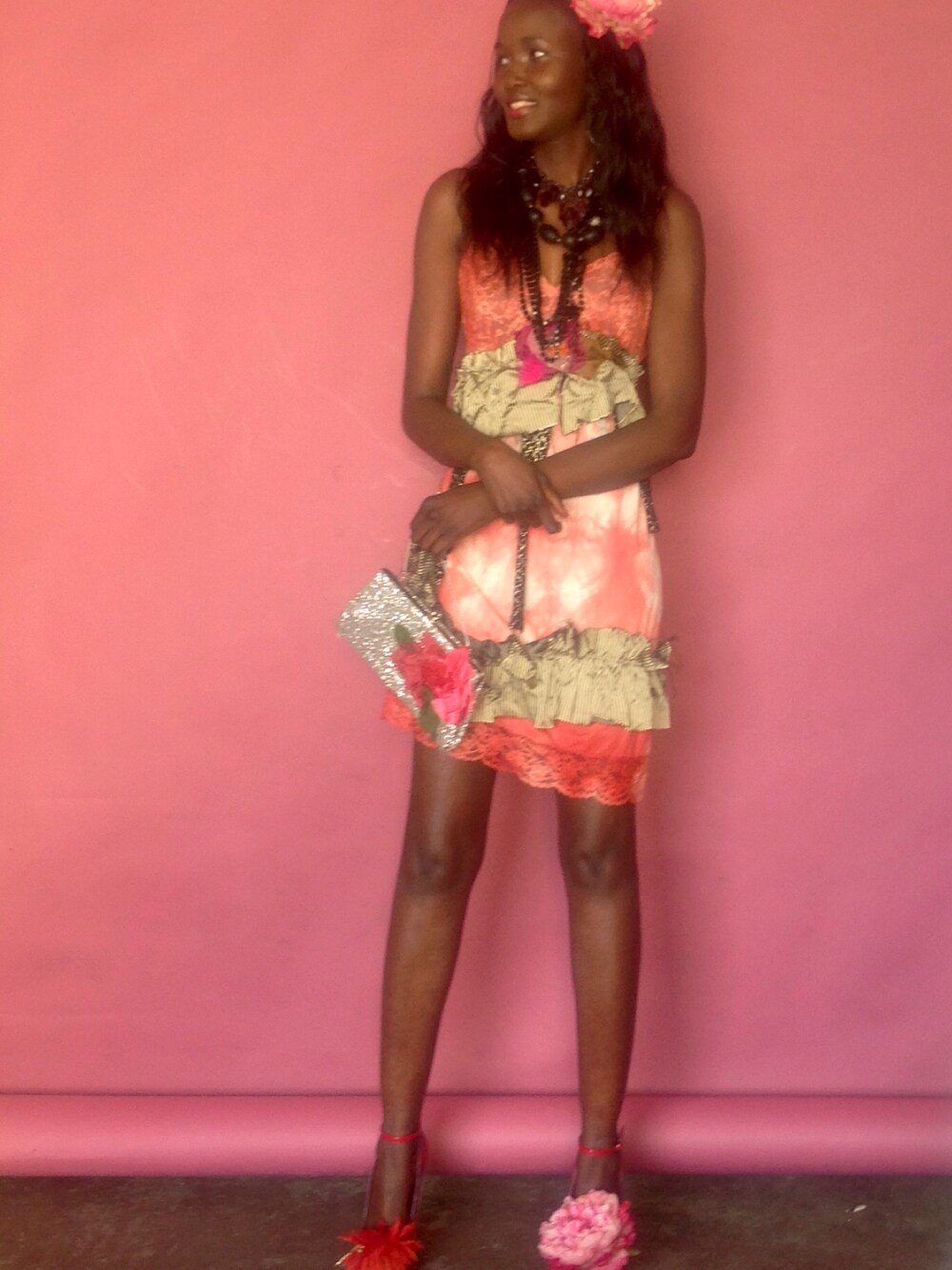 My MMichelle slip dress is worn by model Awa Kane. This is a up cycle hand dyed slip with appliqué hand work.