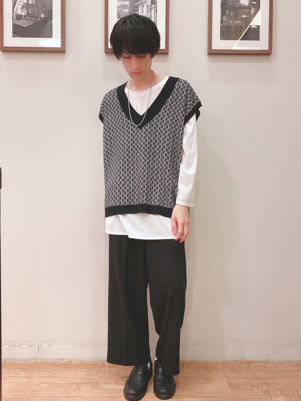 いましのベスト「◆【2点セット】ジャカードベスト+Tシャツ」を使ったコーディネート