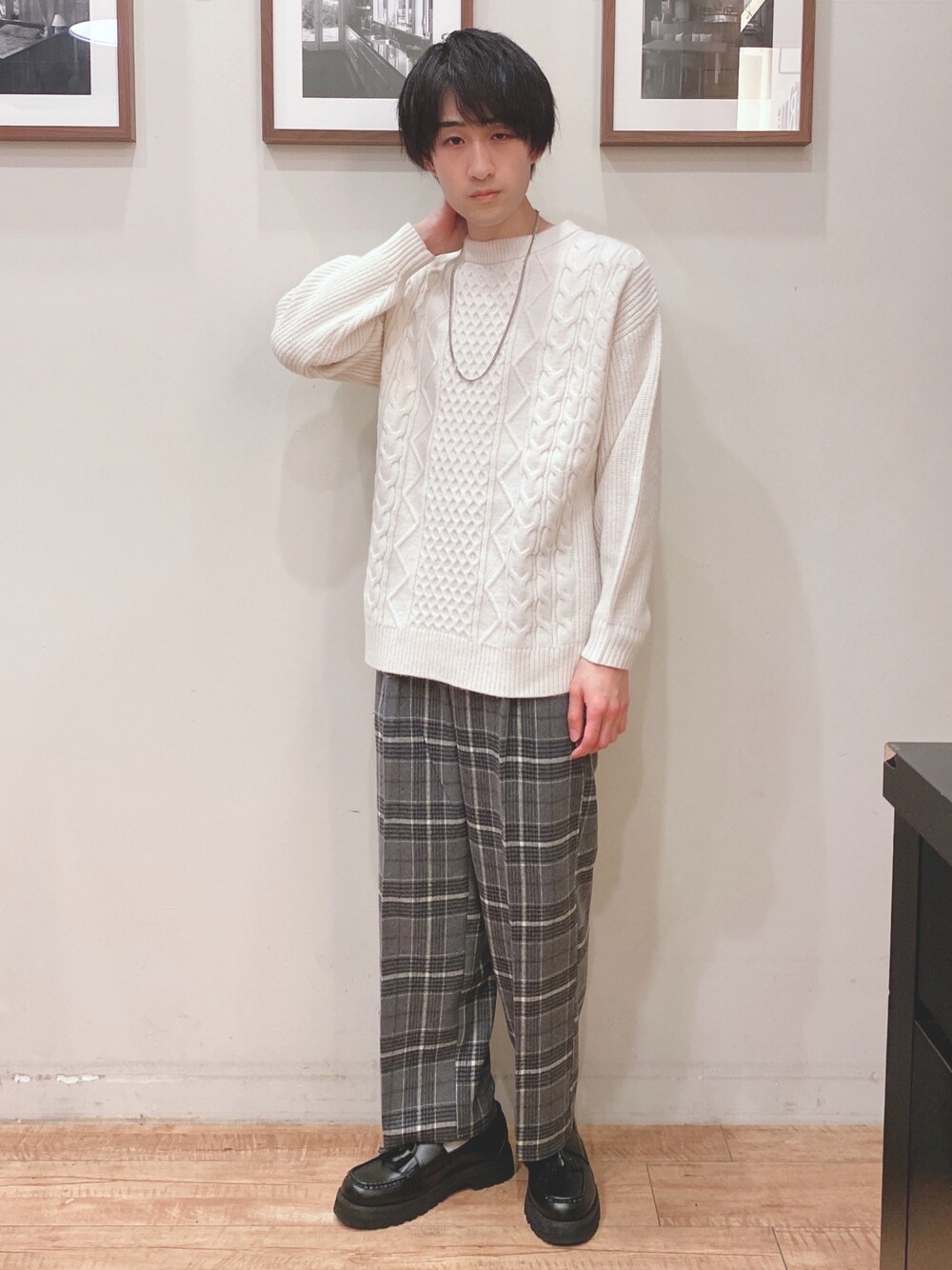 ☆ ご覧いただきありがとうございます😊 いいね❤️、お気に入り⭐️などいつもありがとうございます!レディースブランドですが、毎日投稿させていただいてます♪ もちもちケーブルニット ✖︎サス付きパンツ ホワイトニットコーデ☃️ トップスは洗濯機で洗えるざっくりもちもちケーブルニットからアイボリーを着用してます! チクチクしにくく着心地ももちもちしてオススメですよ✨ ケーブル柄が特徴の可愛いニットとなっております🎵 パンツは起毛生地が嬉しいサス付きパンツからグレー系(チェック柄)を着用してます🏁 ウエストゴムで履きやすさも抜群ですよ✨ サス付きなので色んなコーデに使えますよ☺️