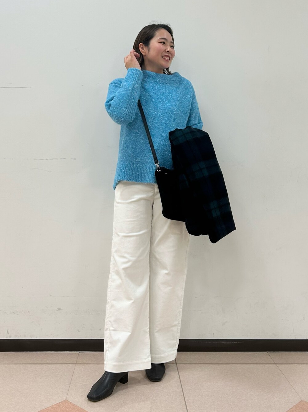 〈ブルーニット〉 存在感のある、ブルーのニット! 緩やかに前後差のあり、パンツ、スカート ともに相性がいいです◎ ヒップが隠れる丈感です! 〈ベッチン素材のワイドパンツ〉 履いてみるとストレッチが効いているので とても履きやすいです! ワイドパンツなのですが程よく落ち感もあり 脚のラインが綺麗に見えます◎