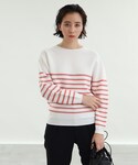 SHO(INDIVI OFFICIAL)のニット/セーター「◆【日本製/ガーター編み】ボートネックニット」を使ったコーディネート