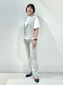 【YUUKI_157cm_熊本鶴屋】 ジレをジャケット代わりに羽織ればオシャレできちんと感のあるお仕事スタイルに♪ドライタッチで夏も涼しく着用頂ける洗える麻素材のセットアップです。 ショート丈のジレは、身幅にゆとりがありますが、袖口は脇が見えないように細身に感じました。 カットソーは程よいボリュームの袖に、身頃がスッキリとしたバランスの良いデザインです。ボトムを選ばず1枚着やジレと合わせて幅広く活躍する5分袖です。 パンツは細身のストレートです。いつものサイズ感でぴったりでした。透け感は気にならず、安心して着用できました。 Instagram▶︎@indivi__official