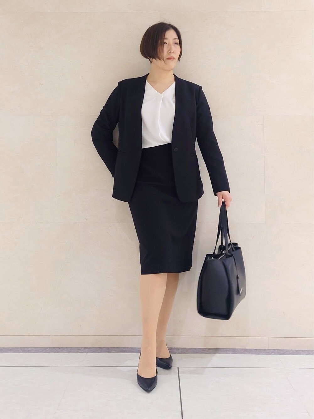 【Ito_160cm_札幌大丸ラージ】 カラーレスジャケットは一つボタンでスッキリシルエット開けても閉じても様になるデザイン♪サラッとした素材で軽い着心地です。スカート着丈は160センチの私で膝の隠れる着丈です Instagram ▶︎@INDIVI__OFFICIAL