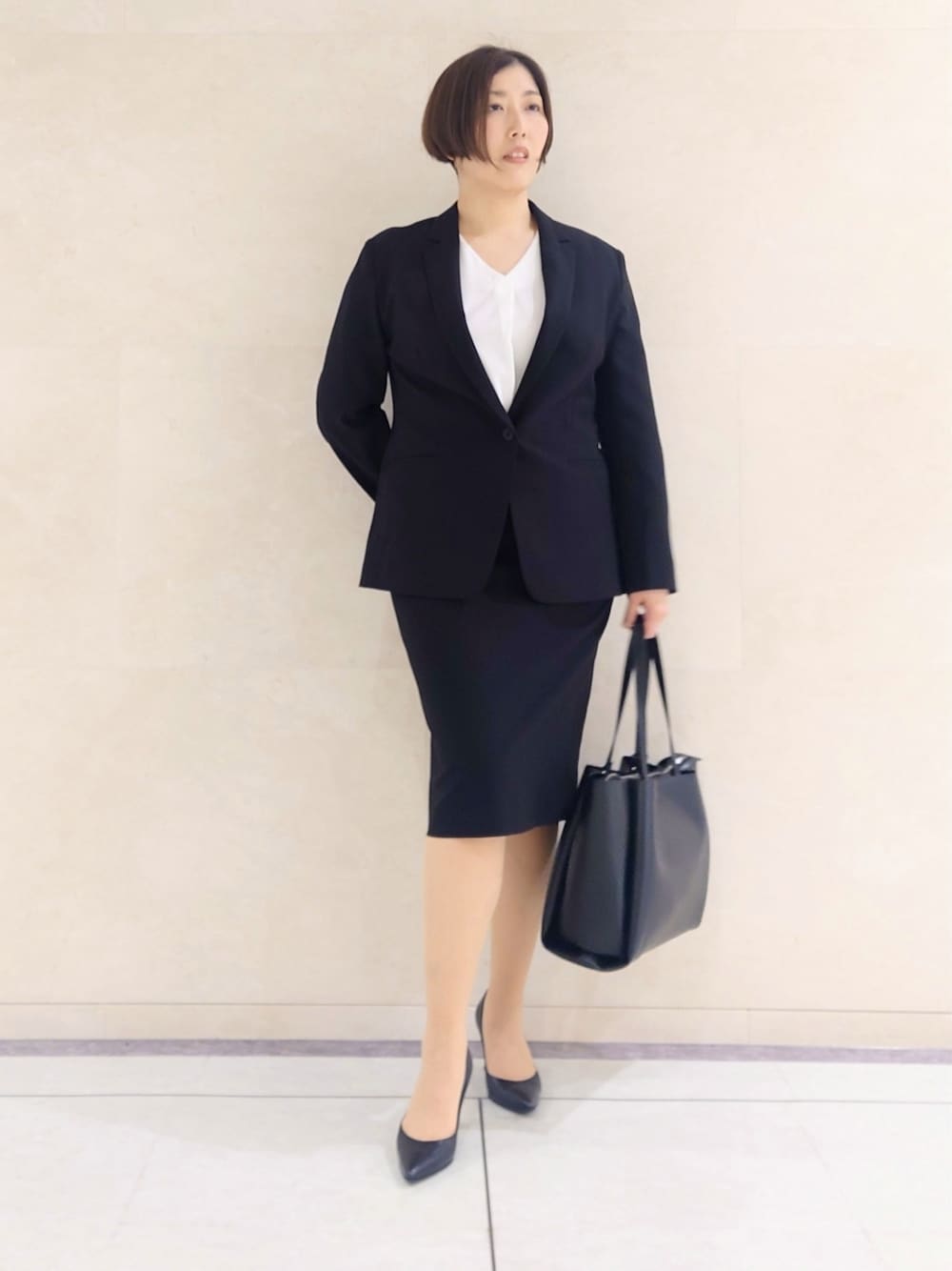 【Ito_160cm_札幌大丸ラージ】 定番シルエットのテーラードジャケットは長すぎない着丈でスカートに合わせてもスッキリ着用出来るデザインタイトスカートはゴムなしで伸びない素材なので余裕のあるサイズをオススメします。 Instagram ▶︎@INDIVI__OFFICIAL