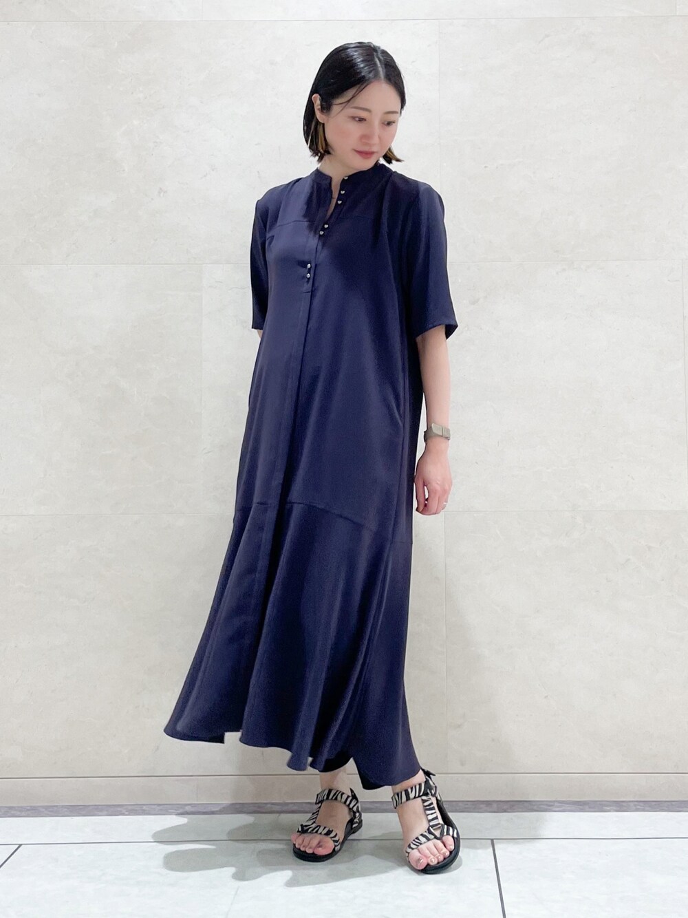 【shiho_161cm_札幌大丸ラージ】 メタル釦のアクセントがポイントのワンピース。 裾切り替えのマーメイドシルエットはとても美しく一枚でも様になります。 ダークパープルは秋に向けてもおすすめカラーです。 Instagram ▶︎ @indivi__official