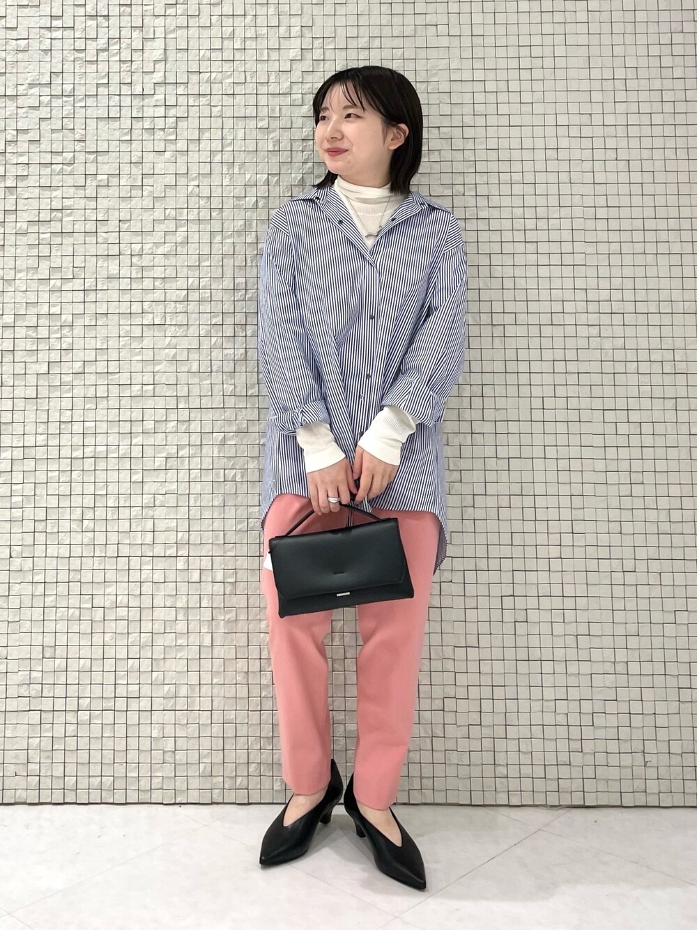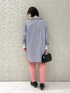 【saku_146cm_池袋東武INDIVI】 ブルーストライプ×ピンクパンツ。 ベーシックなアイテム同士だからこそカラーコーデがまとまります◎ ・シャツ 38着用。オーバーサイズです。 ・パンツ 05着用。全体的にぴったり。 Instagram ▶︎ @indivi__officia