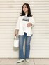 kaho(INDIVI OFFICIAL)のデニムパンツ「◆【トレンド/洗える】ハイストレッチ セミフレアデニムパンツ」を使ったコーディネート