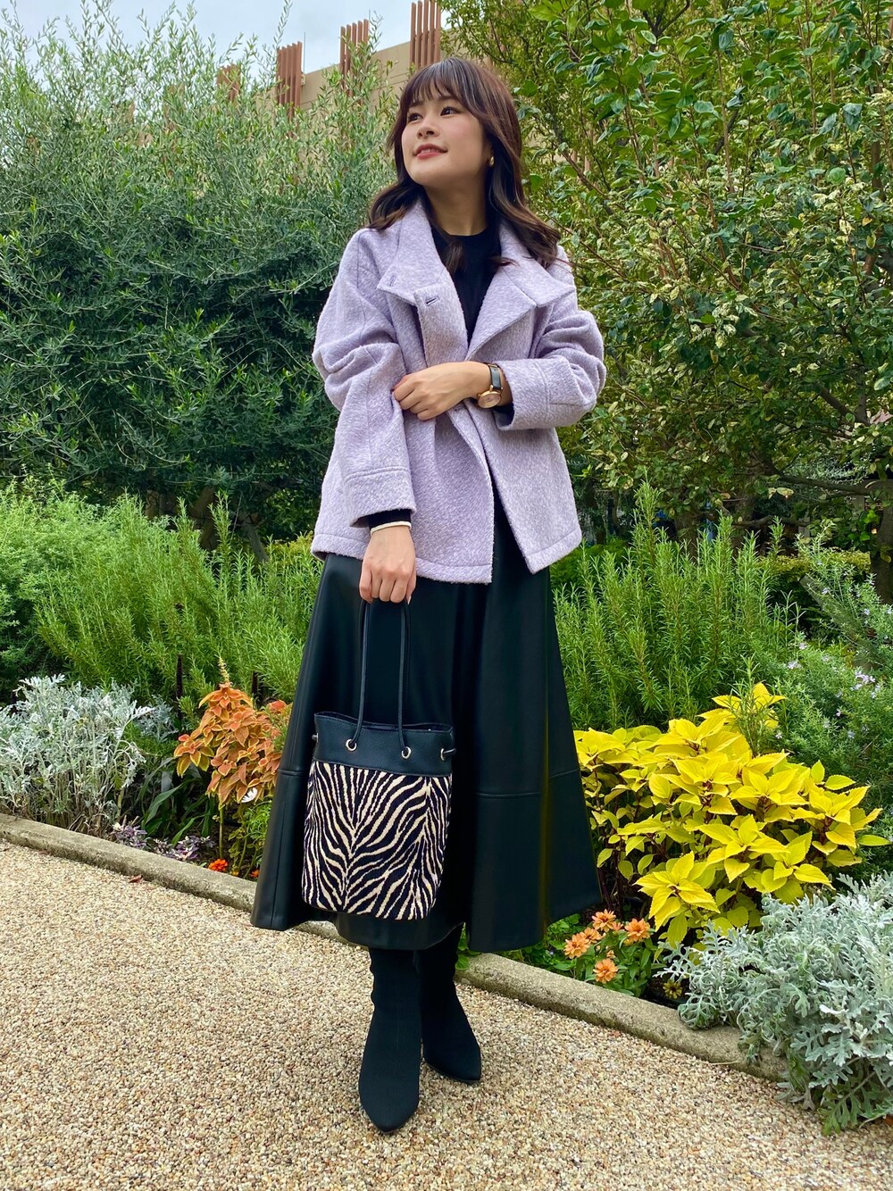 mona(INDIVI OFFICIAL)のスカート「◆【セールおすすめスカート】フェイクレザーフレアスカート」を使ったコーディネート