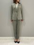 〜ウール調セットアップ〜 《ジャケット》36サイズ着用 細身でスタイリッシュなシルエット。 36サイズはブラウスで少しの余裕あるサイズ感。 冬場にかけてインナーにニットや しっかりめのブラウスを着用する場合には 36サイズがちょうど良かったです。 《パンツ》34サイズ着用 ・ウエスト 腰骨上できちんと安定感がありながら、 座ったりがしやすほどよい余裕のあるサイズ感。 ・着丈 甲に乗る丈でした。 2.5cmほど詰めると甲に乗らずの丈でした。
