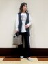 yuu_161㎝ 水戸京成百貨店 お尻が隠れるロング丈のジレとワイドパンツのセットアップコーデです。インナーをTシャツにしてカジュアル感をだしました。 instagram▶︎@indivi.official