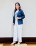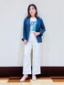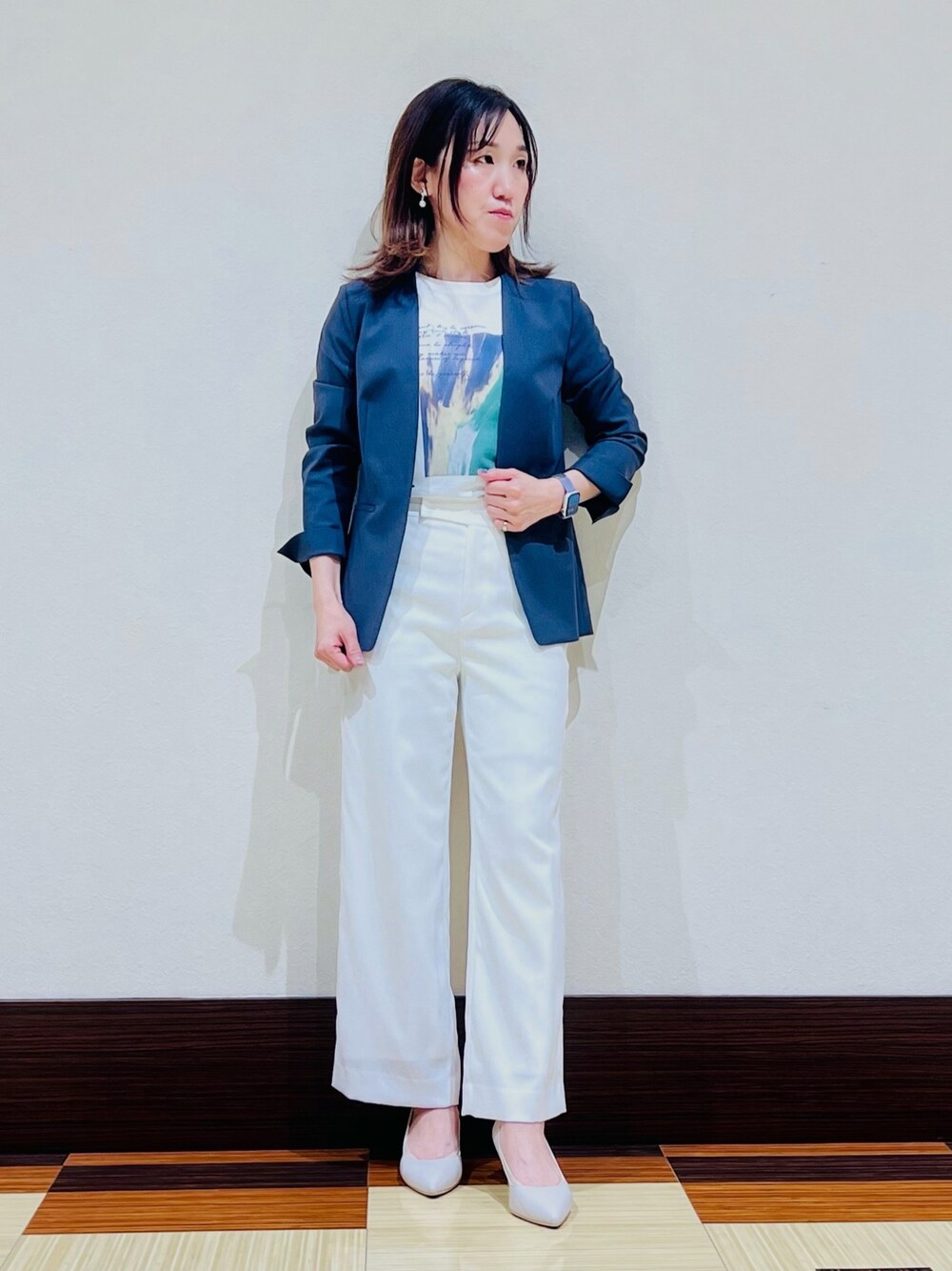 麻混のノーカラージャケットは夏の通勤スタイルに大活躍します。細見えするデザインになってますが程よいゆとり感があります。インナーをTシャツにしてラフ感をだしました。セットアップでパンツもありますが単品使いのスタイリングです。 instagram▶︎indivi__official