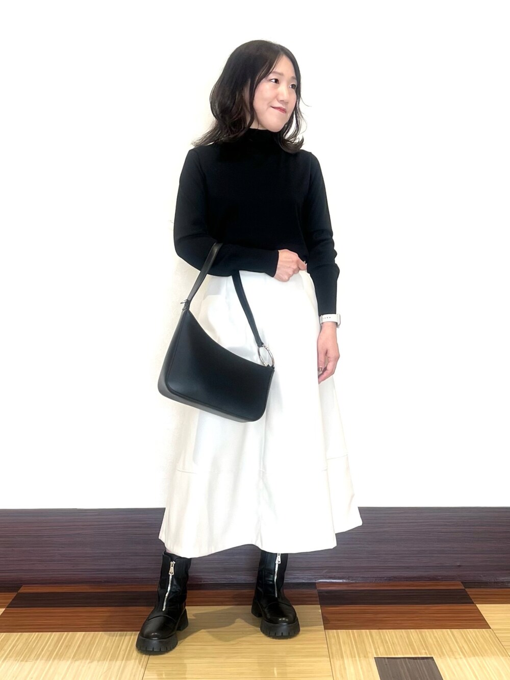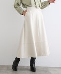 【oggi 11月号掲載/滝沢カレンさん着用】 ソフトでストレッチの効いたフェイクレザーのフレアースカートは、トレンド感もありながら機能性抜群。今年の冬大活躍してくれそう ♪ ウール100%のシンプルなニットは、スカートを更にステキに引き立たせてくれます。 ケーブルニットは肩掛けしています。 instagram▶︎@indivi__official @nao51yuuko
