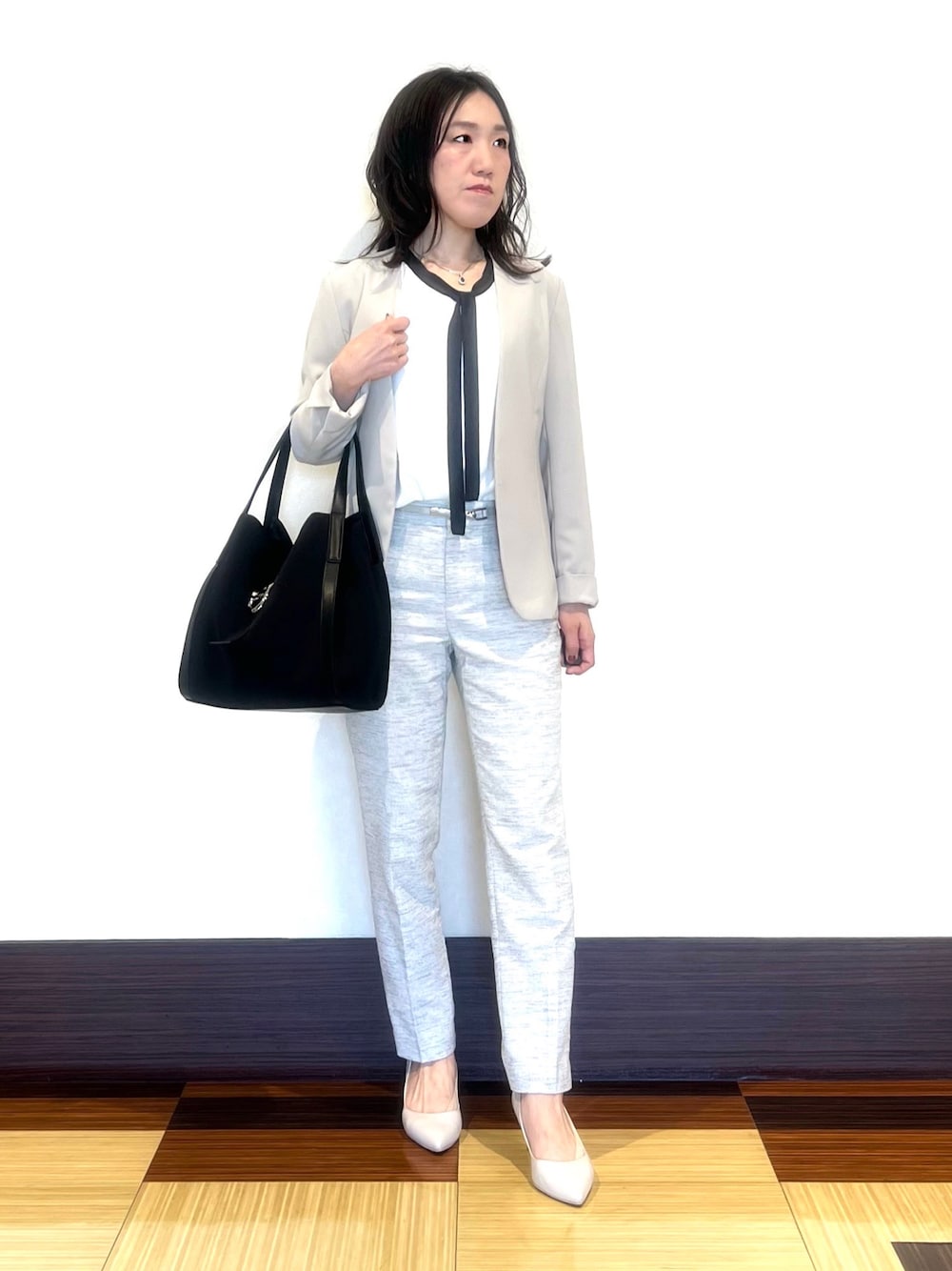 yuu(INDIVI OFFICIAL)のスーツジャケット「【洗える/UVケア/エコ/日本製】ストレッチノーカラージャケット」を使ったコーディネート