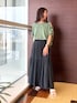 微光沢のあるギャザーたっぷりのティアードスカート。ドロストシャツで肩見せして甘くならないモード感のあるスタイリングにしました。 肩の開き具合が調節できるので雰囲気が変えられるのが◎ instagram▶︎@gallest__official 新作情報などお得な配信をしております。 ブランド公認Instagram▶︎@nao51yuuko INDIVIの紹介プライベートなど配信しています♪ ぜひチェックしてみてください。 フォローやいいねもお願いします!