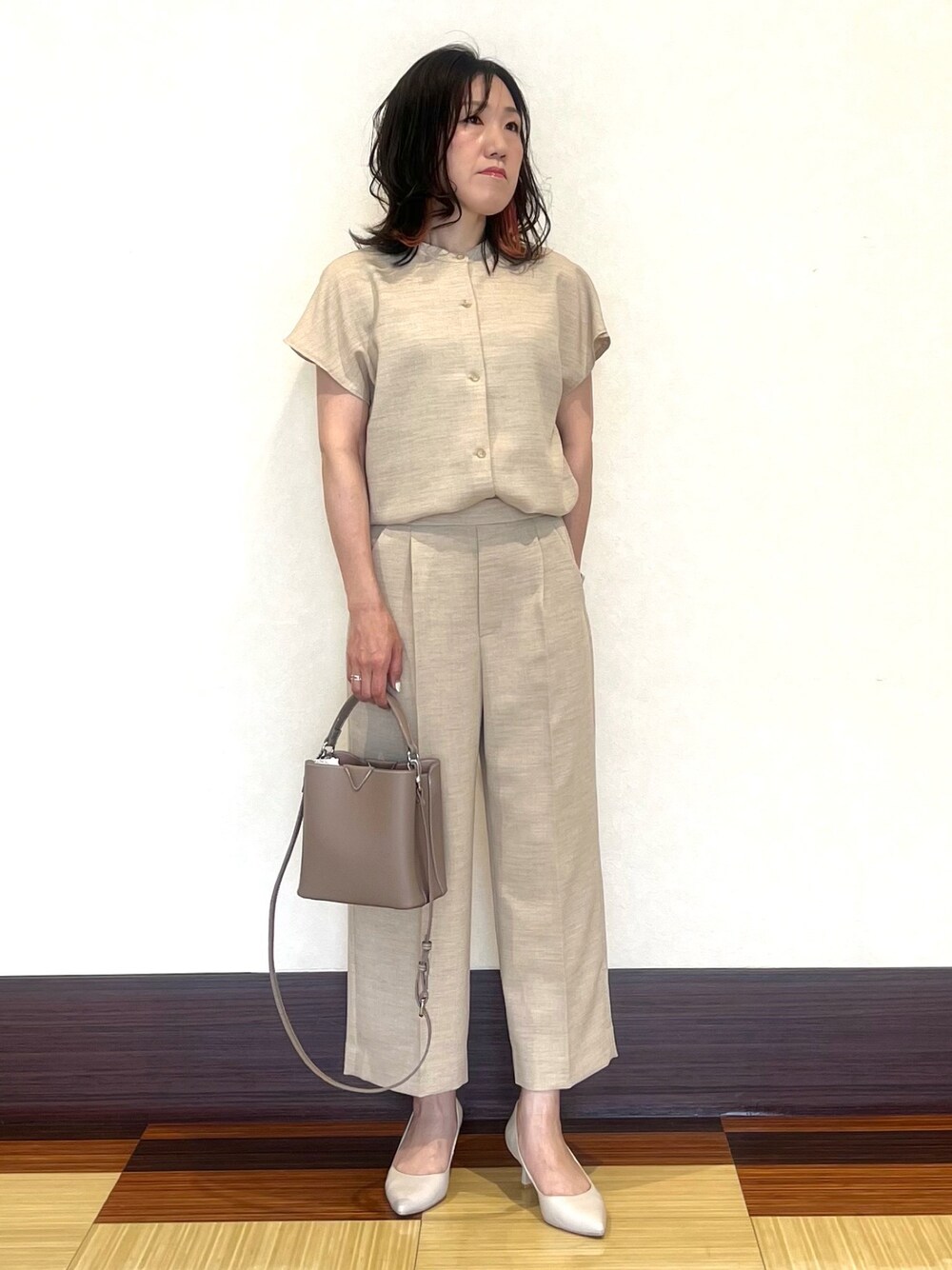 きれいめセットアップ! ポリエステルでシワになりにくく、麻見えする素材で涼しげです。 ブラウスは前ボタンをあけてカーディガン風に羽織りとしても◎ パンツ丈は短めなので低身長の方もスッキリと着こなせます。 instagram▶︎@indivi__official 新作情報などお得な配信をしております。 ブランド公認Instagram▶︎@nao51yuuko INDIVIの紹介プライベートなど配信しています♪ ぜひチェックしてみてください。 フォローやいいねもお願いします!