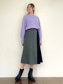 【yazu_165cm_有楽町マルイ店】 ニット:ソフトで肌触り良い素材で着心地◎ ゆったりとしたシルエットと、ヒップにかかる着丈で、リラックス感もありバランスの良いデザインです! 着丈は長めですが、前だけインするとスカートでも綺麗にお召しいただけます^ ^ スカート:ウエストはゴム仕様で履き心地もストレスフリーなのもポイントです^^ ウエストから腰回りにかけてはスッキリさせて、ふくらみを抑えています!お洗濯は、短時間での押し洗いか、石油系溶剤によるドライクリーニングがおすすめです。 Instagram : @indivi__official