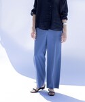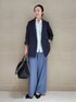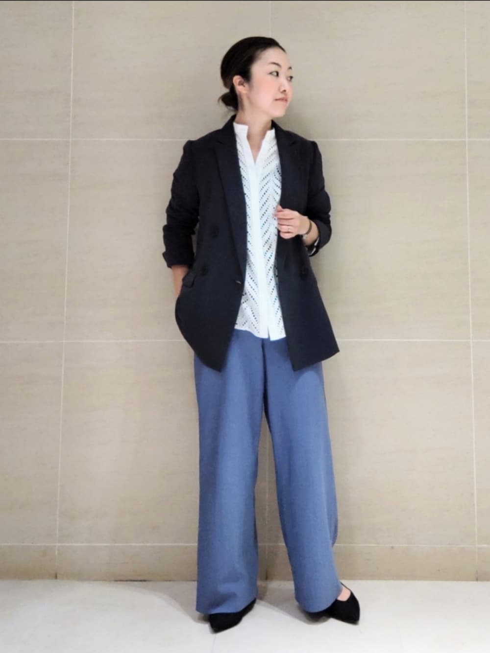 【Takeda_153cm_阪急梅田店】 ダブルの夏ジャケット × ワイドパンツという ハンサムな組み合わせに、 レーストップスを合わせた甘辛スタイル。 羽織りに選んだのは、 まるでカーディガンのような軽い着心地の [こなれシリーズ]のジャケット。 適度なストレッチ性を持った素材には、 紫外線カット、接触冷感、吸水速乾といった 夏に嬉しい機能が充実! 全面柄レースの前開きブラウスは、 ややゆったりめの作りになっているので、 羽織としても活躍するアイテムです。 張りのある素材なので、 最初は少しゴワつきを感じられる方も いらっしゃるかもしれませんが、 だんだんと着なじんできて柔らかくなります。 ボトムには爽やかなブルーのワイドストレートパンツ。 良質なキュプラ素材を使用しているので、 光沢感と落ち感がきれいで、上品な雰囲気。 総ゴムでリラックスしたはき心地ながら、 きちんと感のあるアイテムです。 実は、靴まで全部洗えるアイテムです! ▶着用サイズ 【ジャケット/36サイズ】ゆったりめのサイジングなので、いつものサイズで 程よいゆるさがでます。 【ブラウス/38サイズ】ゆったり着たくて38サイズを着用しています。同じくらいのご身長の方ですと、38サイズで 袖がちょうど長袖になると思います。 【パンツ/36サイズ】ウエストは総ゴムですが、ゆるすぎることはなく ちょうど良いサイズ。着丈を直さず着られます。総ゴム仕様なので、ウエストを1つ折って微調整することも可能です♪