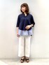 【 mari_151cm_堺高島屋店】 レイヤード仕立てのブラウスは、1枚でコーディネートが決まる優秀アイテム。 セミワイドシルエットのボトムは膝上の位置で少し細くなっているので、広がり過ぎずスッキリとした印象に。151cm、3号着用で、くるぶしが見える丈です。 Instagram ▶︎ @indivi__official