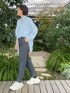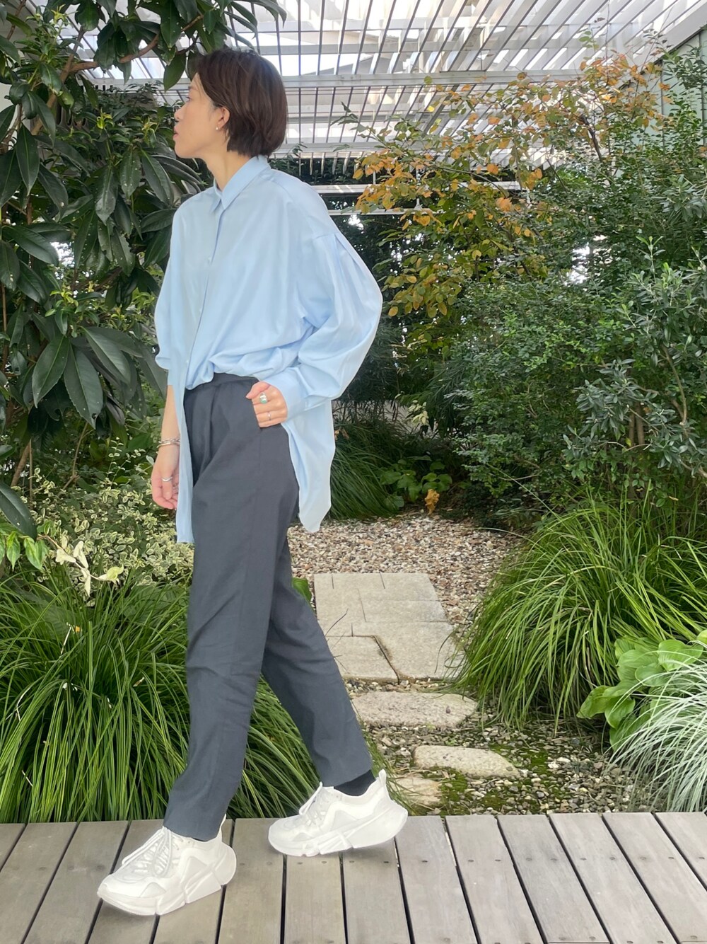 リアルバイ 私物ルックです。 キレイめシンプルをスニーカーとカラーで外しました。 少しメンズライクなストリート風です◎ シャツはセルロースで落ち感があり タックなどのデザイン性があります。 パンツはスラックス系のすっきりとしたテーパードラインです。 スニーカーはややゴツめのuggでバランスを取りました◎
