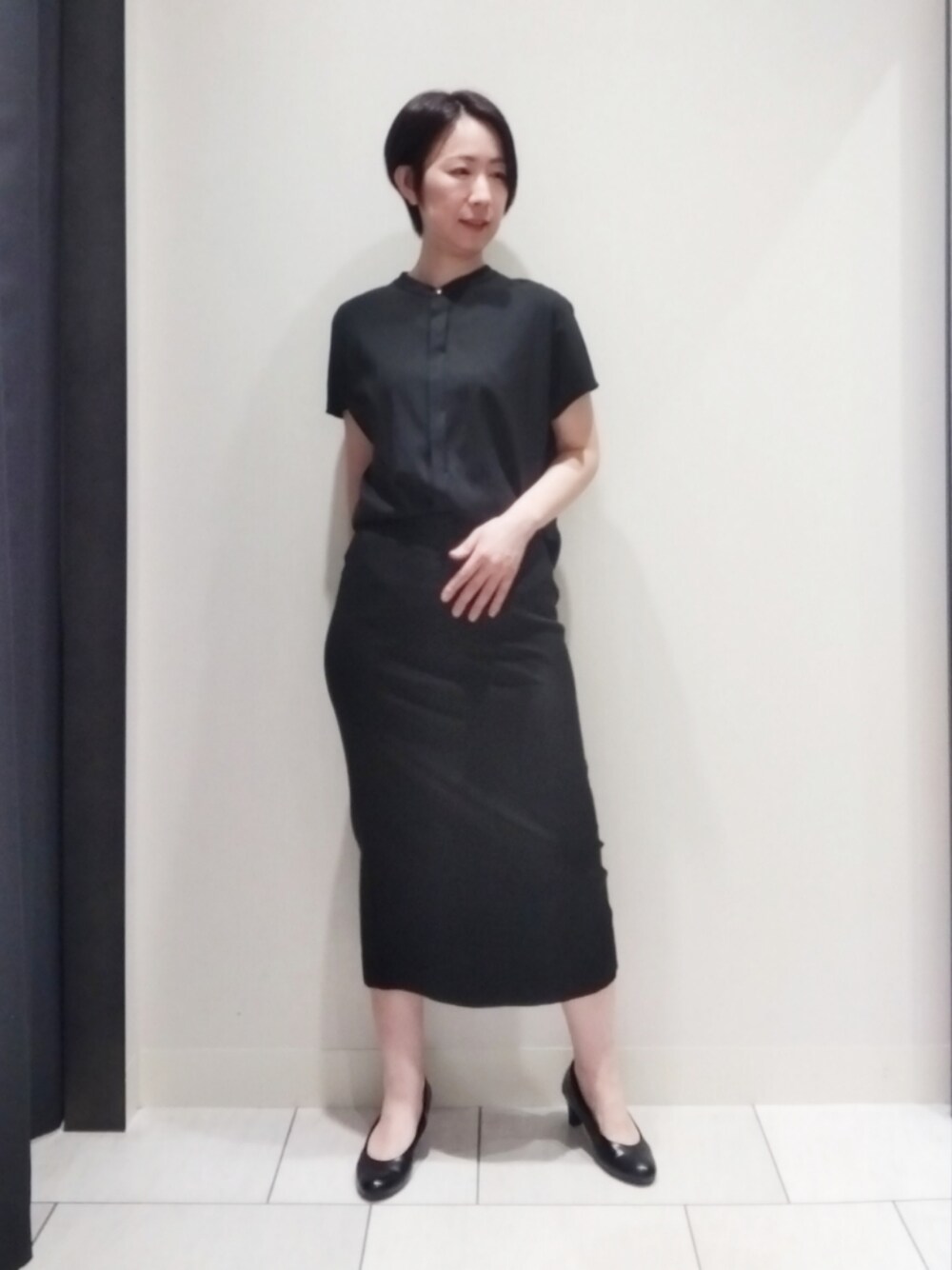 定番人気ストレッチセットアップで時短オフィスコーディネート☆ トップスは着脱楽々!前開きのバンドカラーブラウス。ストレッチがとても効いてますので窮屈感は全くありません♪つるつるっとした肌触りで暑い時期も快適☆ゆとりのある身幅で安心の着やすさです☆ スカートはブラウスと同素材なのでストレスフリーな履き心地♪長めですが動きづらさはありませんでした☆ストレートラインなのでヒップまわりのシルエットも拾わず安心です☆ ☆個人インスタ始めました☆ 是非フォローお願いします♪ @sasa_indivi