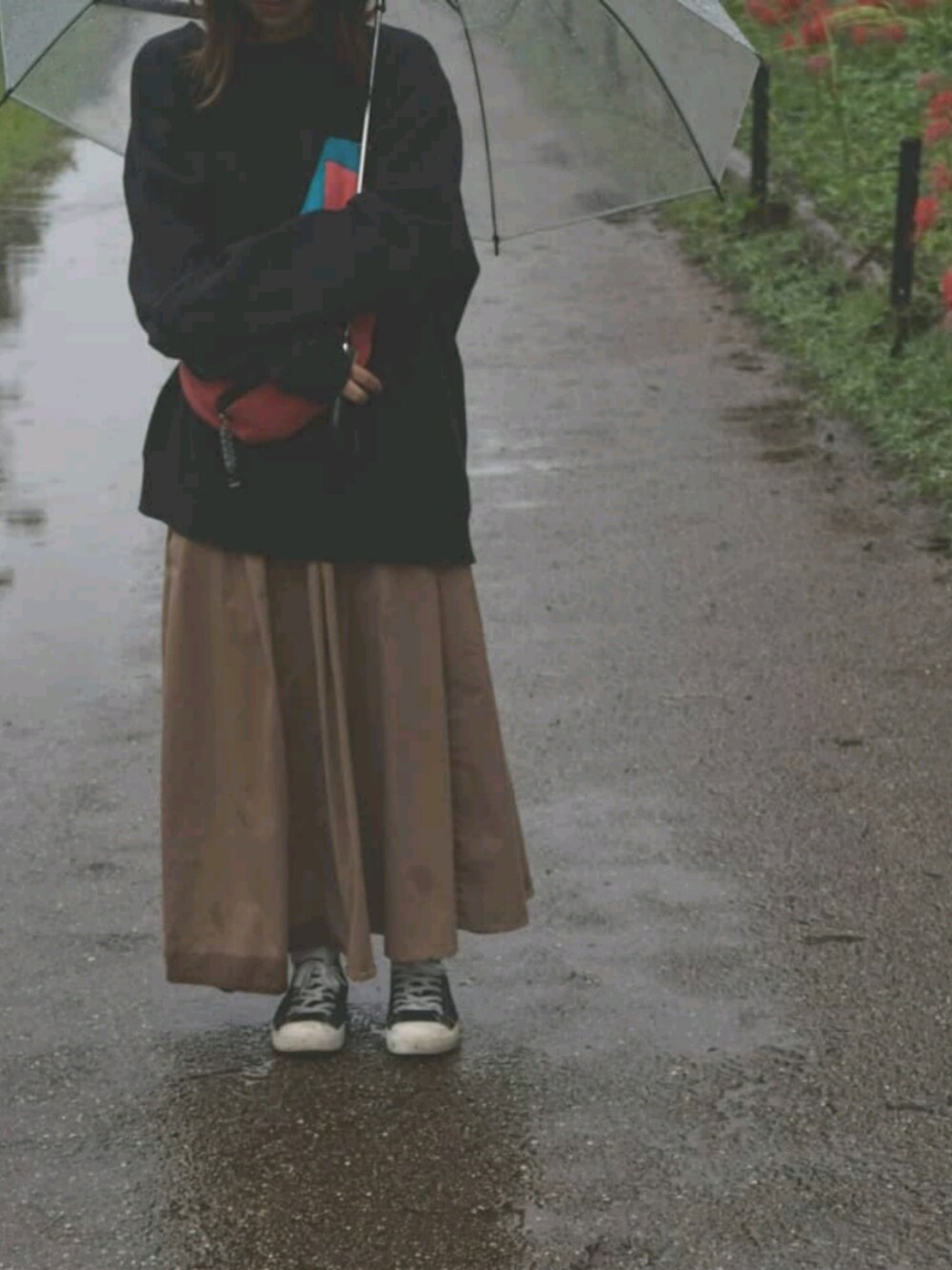 雨の日の散歩、休日はゆるっと。 裾びちょびちょ。