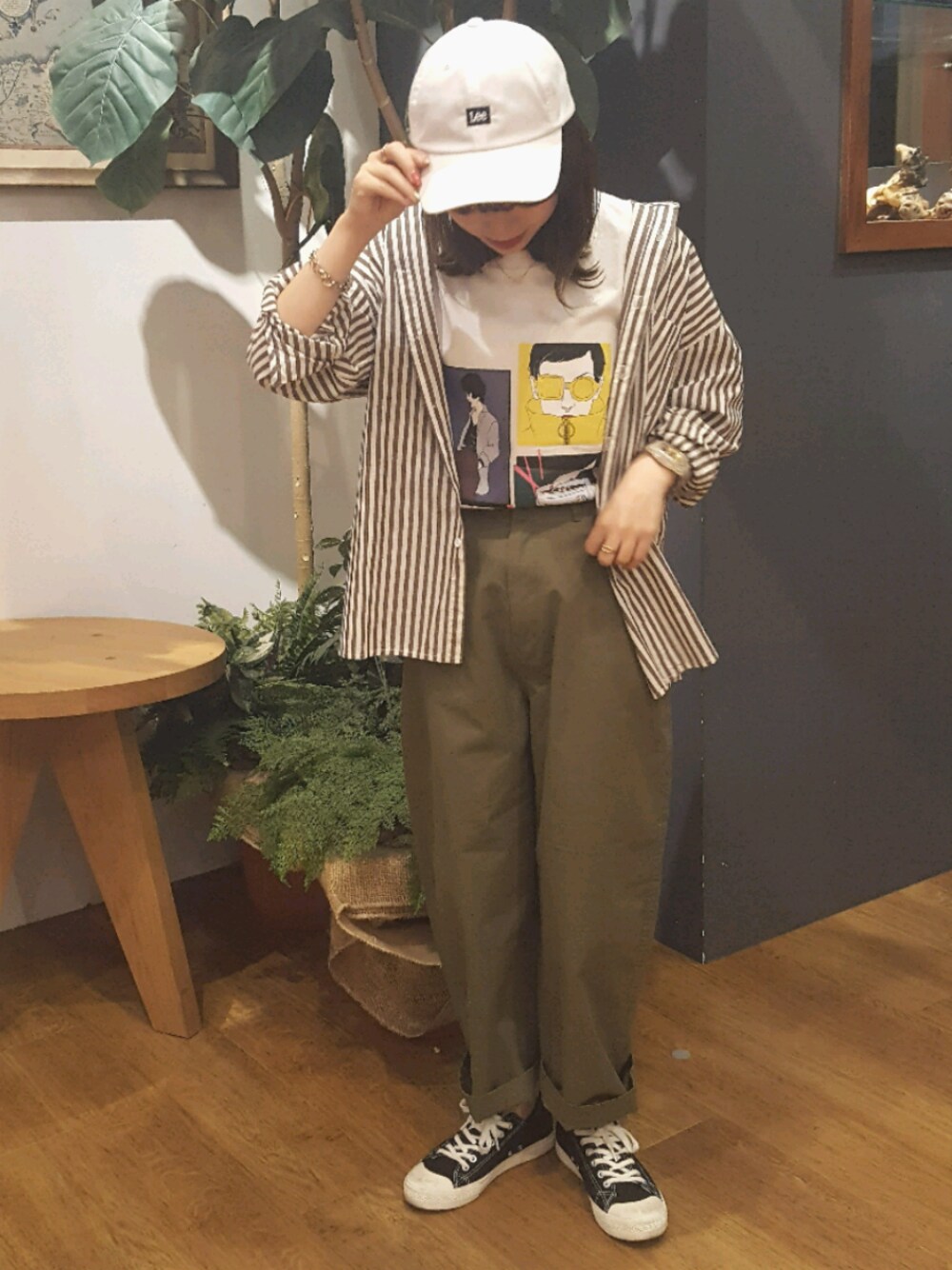 i n eのTシャツ/カットソー「ROUGH TRADE レトロプリント S/S TEE ●」を使ったコーディネート
