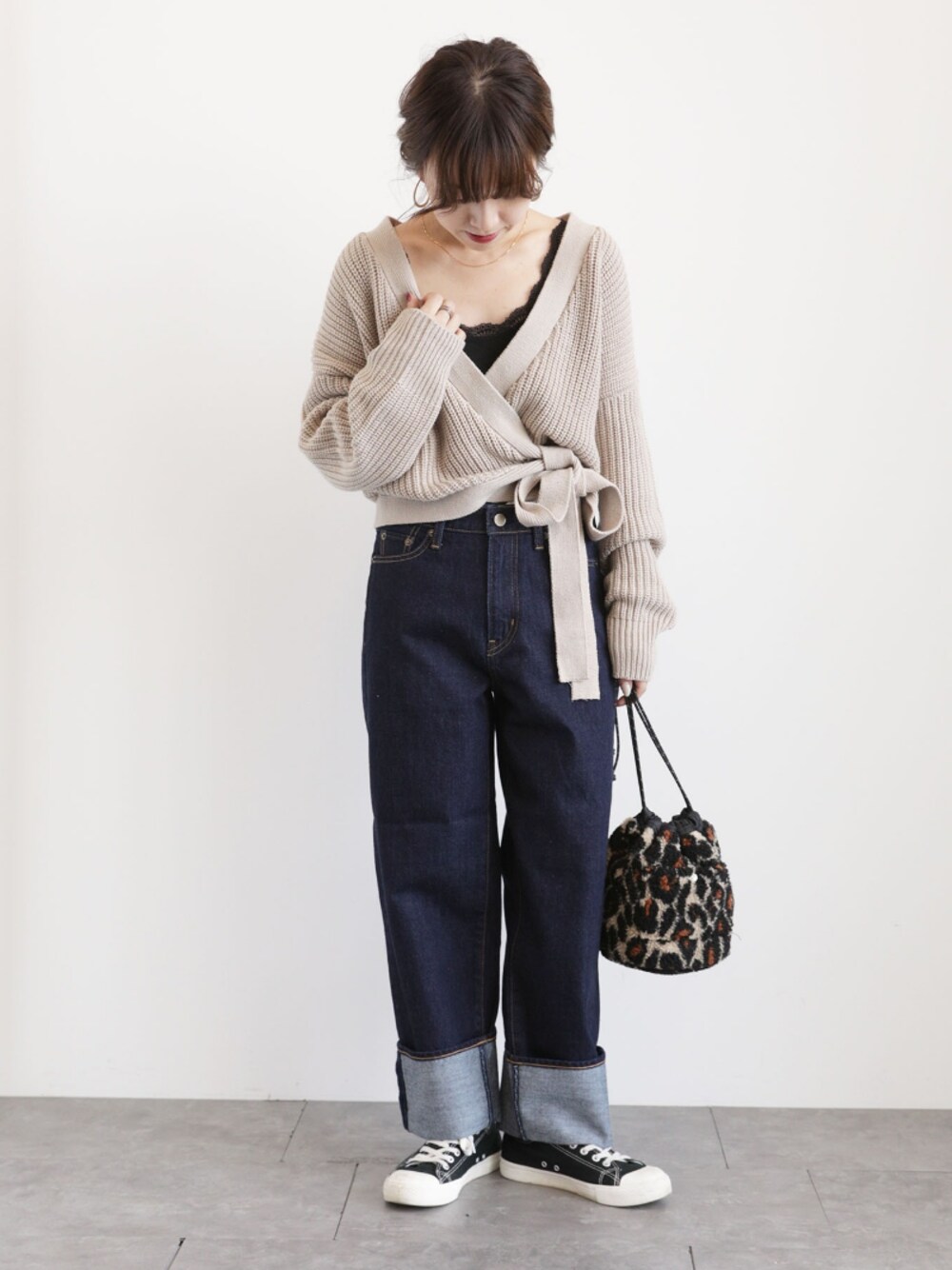 カシュクールが可愛いニット◎ デニムと合わせて可愛くなりすぎず。